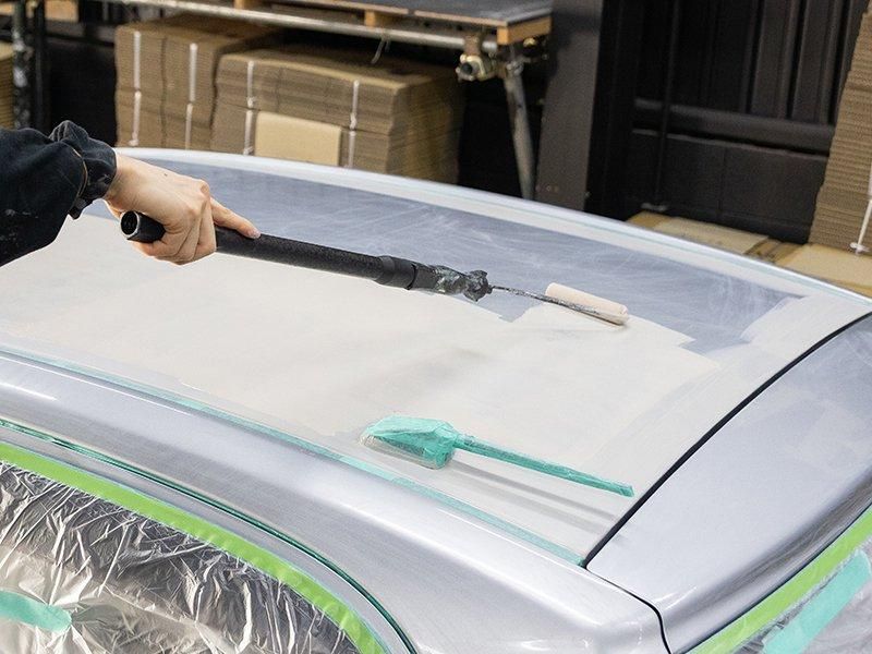 サイドミラーやボディの曲面部、ホイールなどには半分のサイズのミニローラーが便利です。