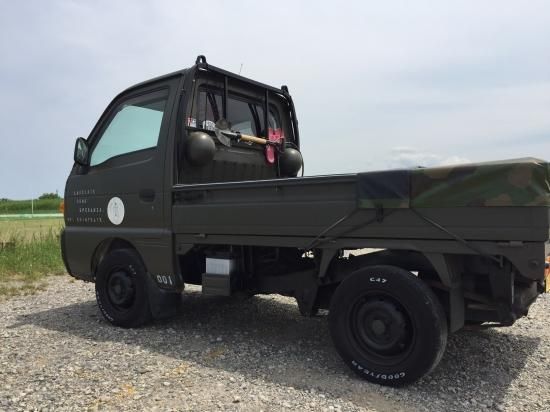 オリーブドラブで軽トラックを全塗装された事例です