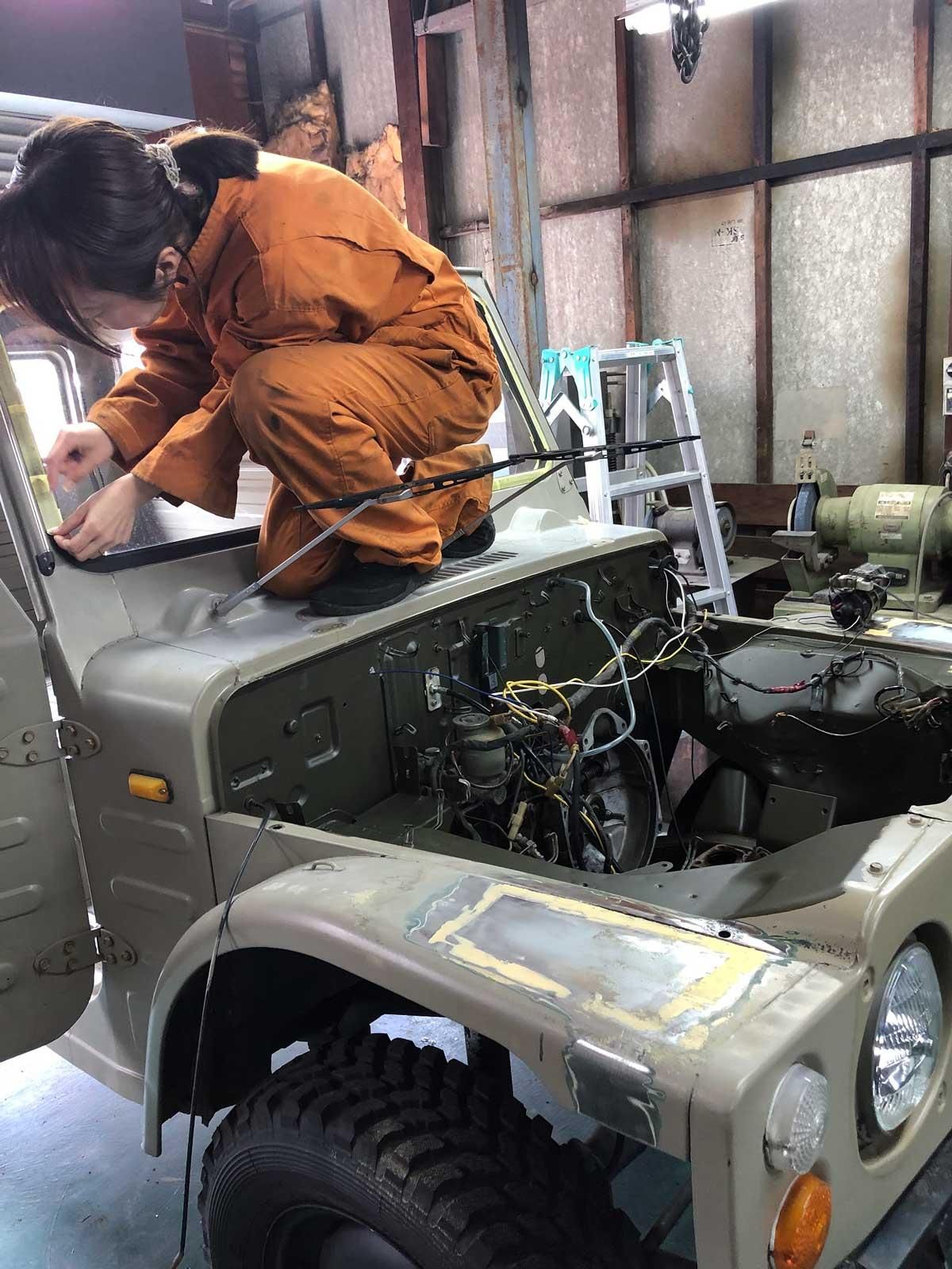 オリーブドラブでジムニーを刷毛塗り全塗装された事例です