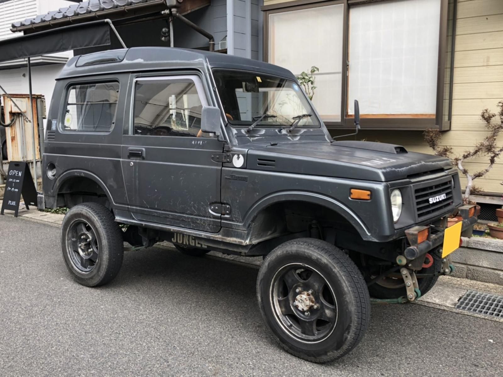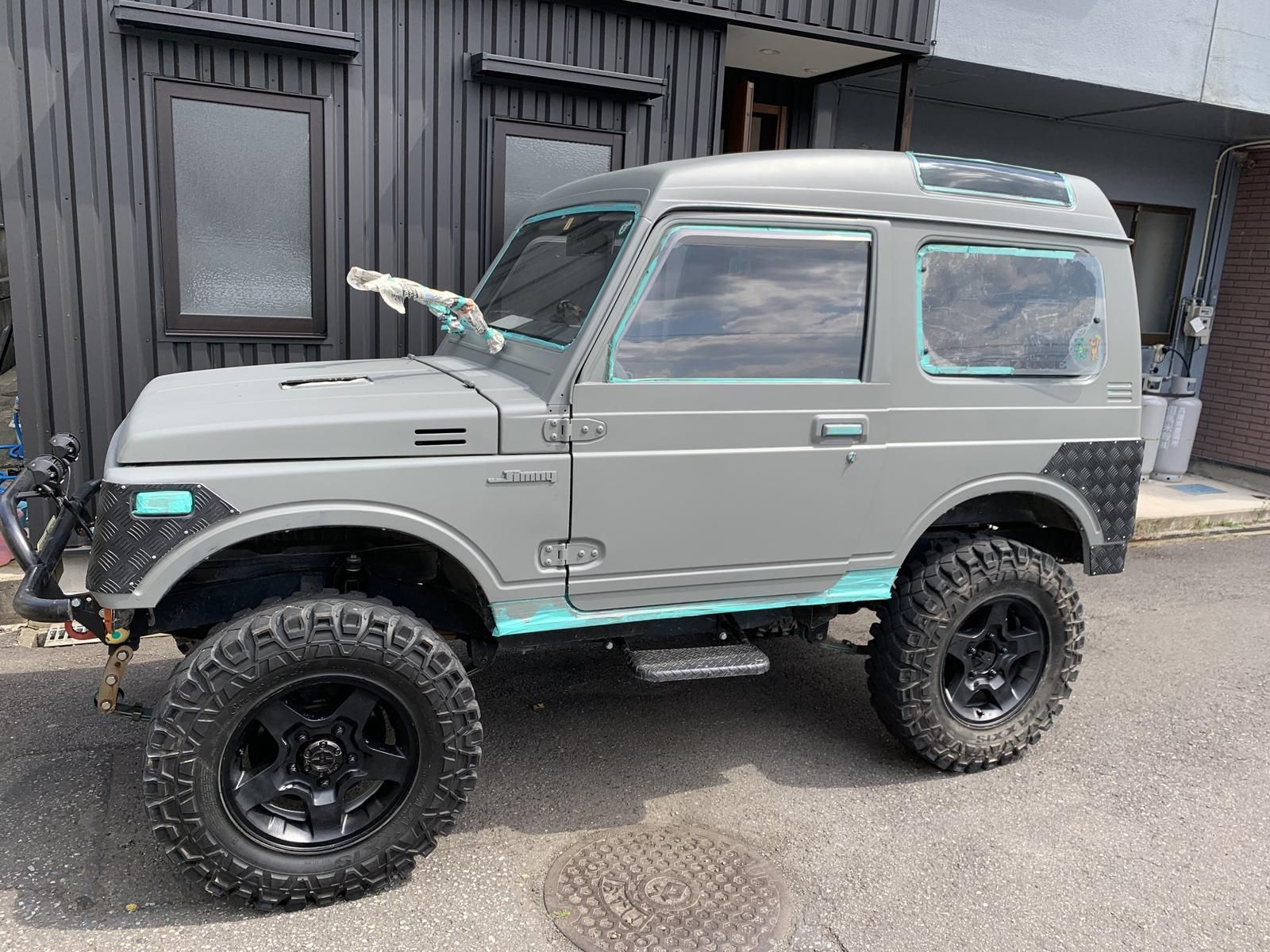 フレンチグレーでジムニーJA11 パノラミックルーフを刷毛塗り全塗装された事例です