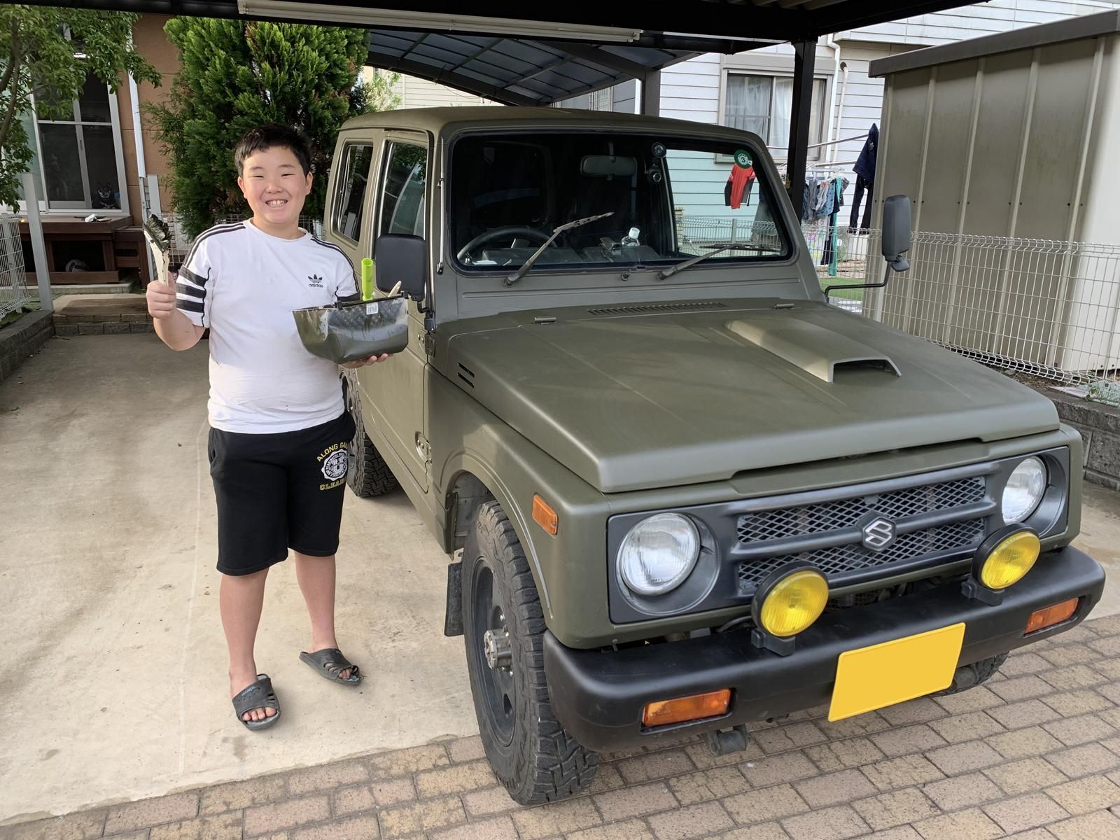 オリーブドラブでジムニーJA11を刷毛塗り全塗装された事例です