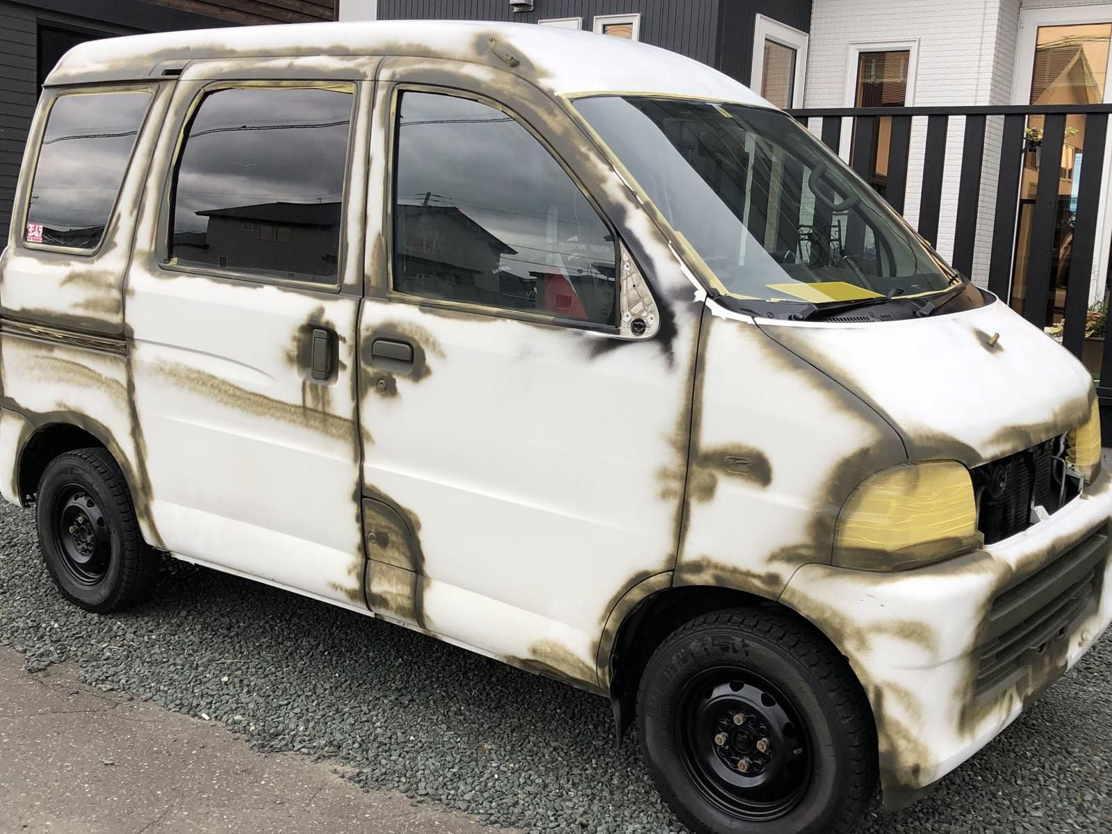 オリーブドラブでハイゼットカーゴを刷毛塗り全塗装された事例です
