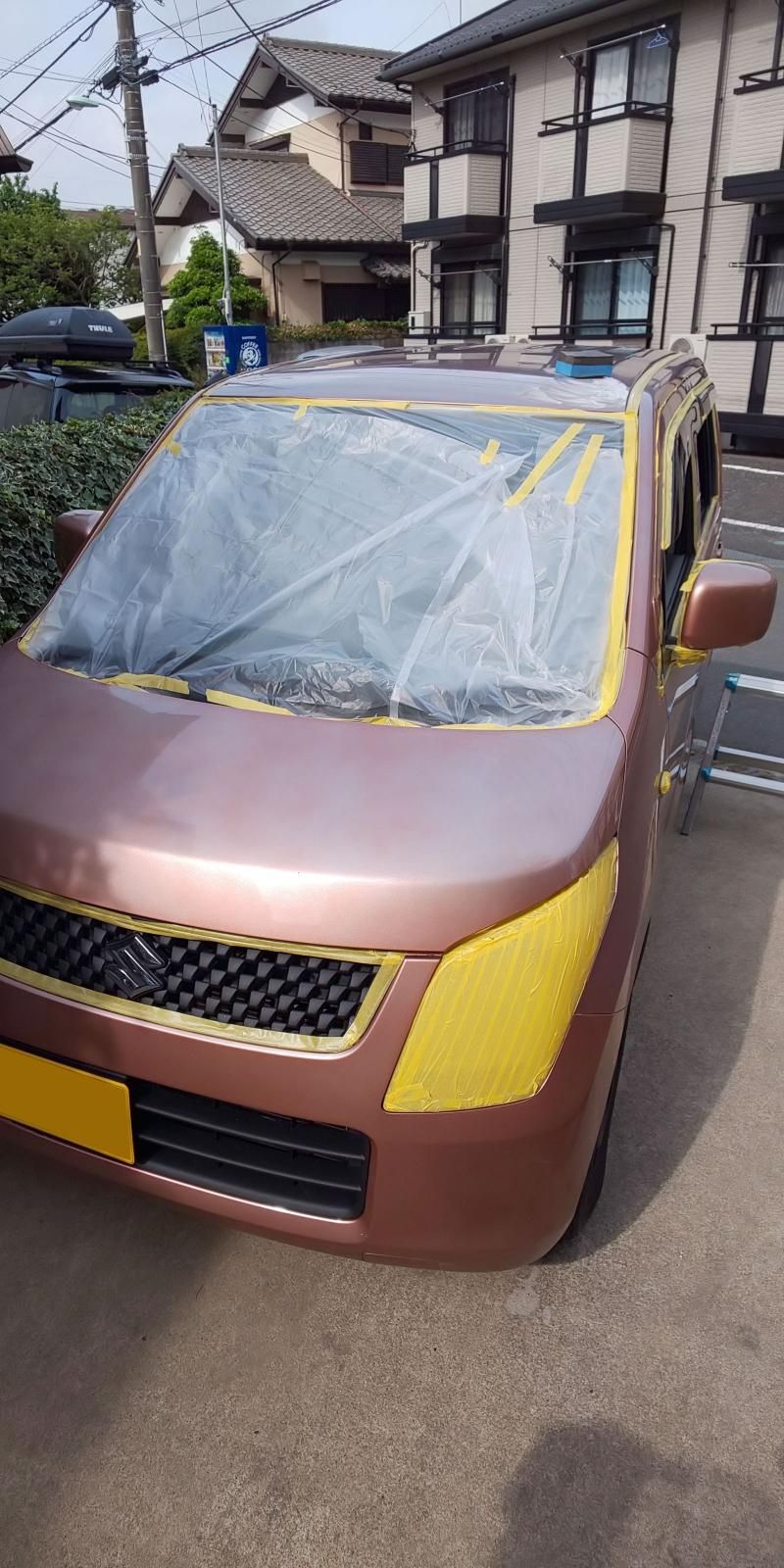 オリーブドラブでワゴンRを刷毛塗り全塗装された事例です