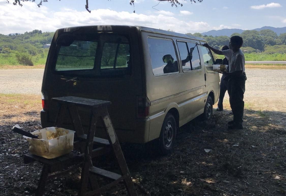 ビスケットでボンゴを刷毛塗り全塗装された事例です