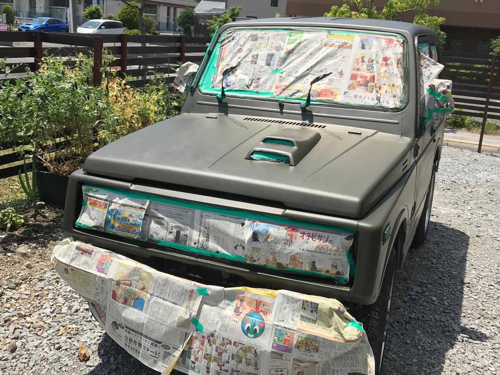 オリーブドラブでジムニーを刷毛塗り全塗装された事例です