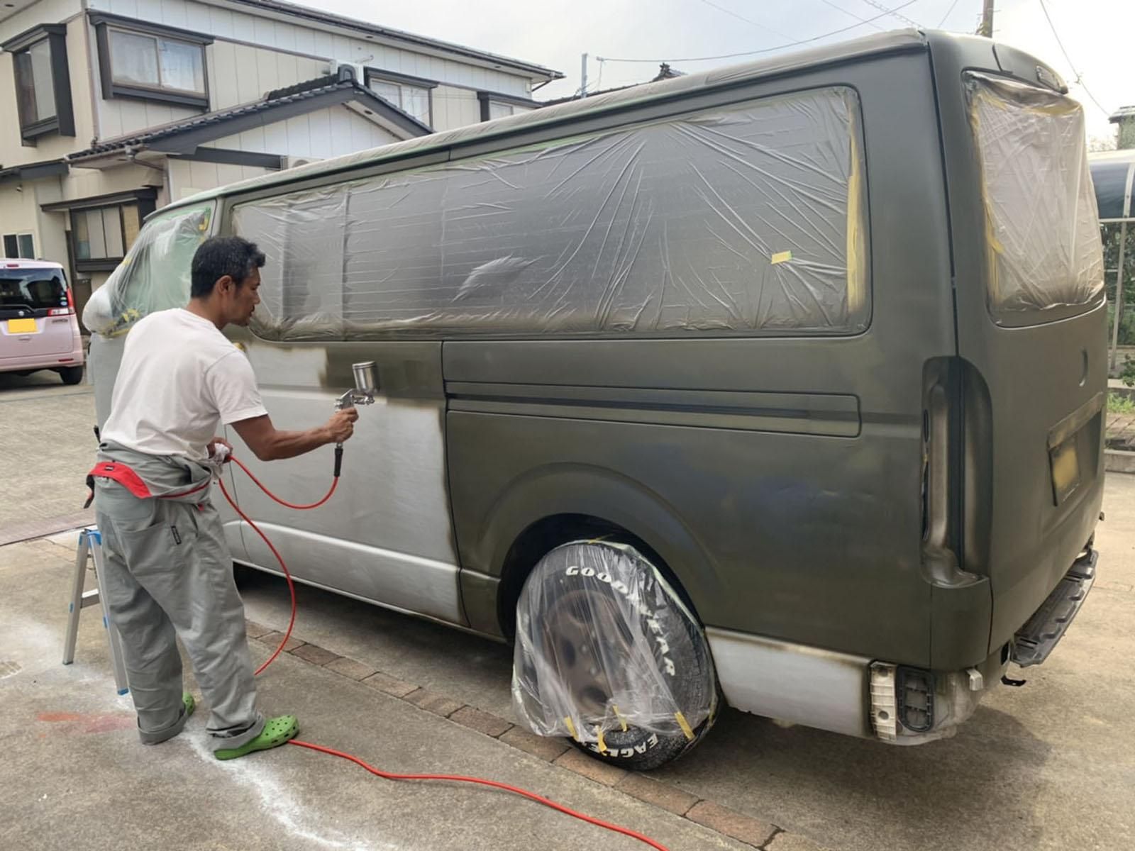 オリーブドラブで200系ハイエースを全塗装された事例です