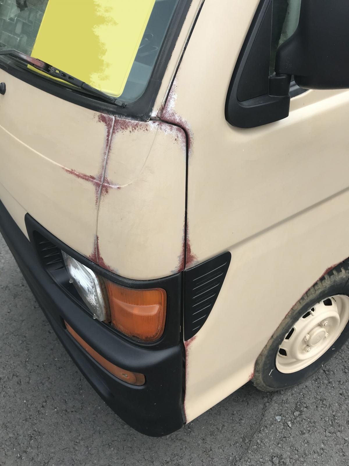 ミルクティーベージュでハイゼットを刷毛塗り全塗装された事例です