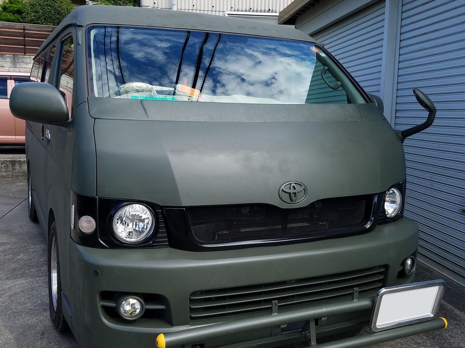 オリーブドラブで200系ハイエースを刷毛塗り全塗装された事例です