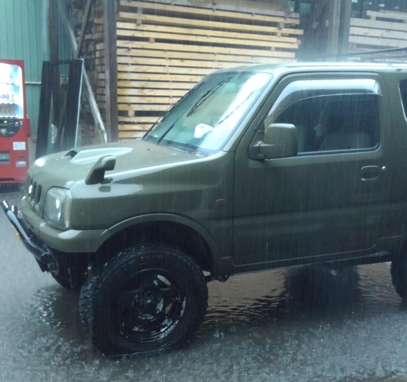 オリーブドラブでジムニーを刷毛塗り全塗装された事例です