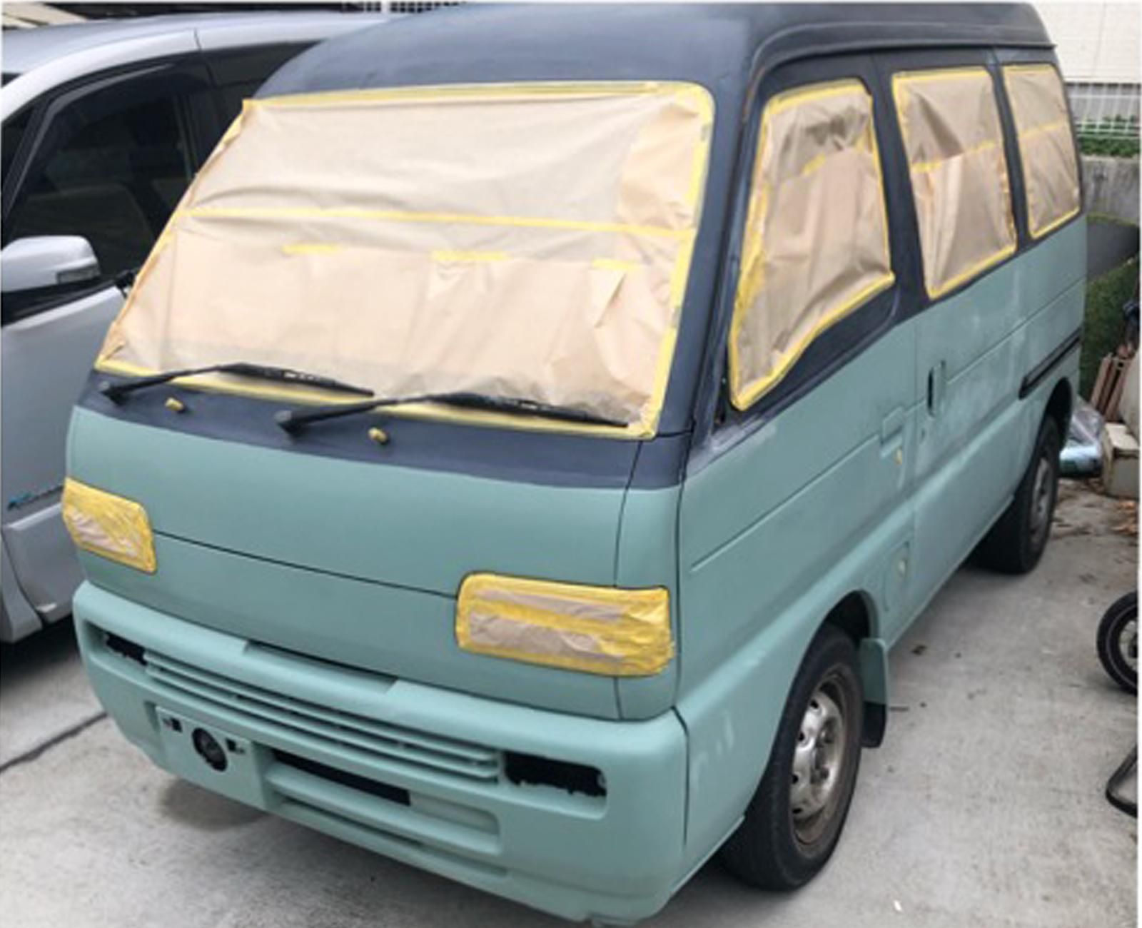 パンプキンスープでエブリイDE51Vを刷毛塗り全塗装された事例です