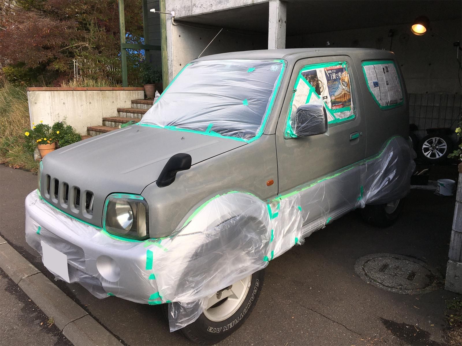フレンチグレーでジムニーワイドを刷毛塗り全塗装された事例です