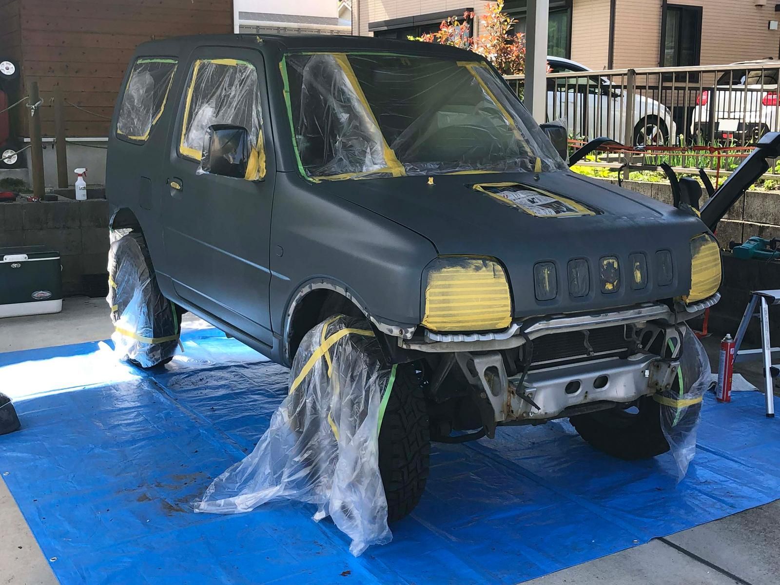 イーグルブルーグレーでジムニーJB23を刷毛塗り全塗装された事例です