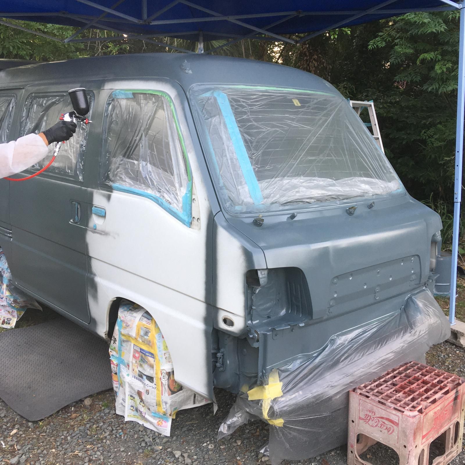 イーグルブルーグレーでサンバーを全塗装された事例です