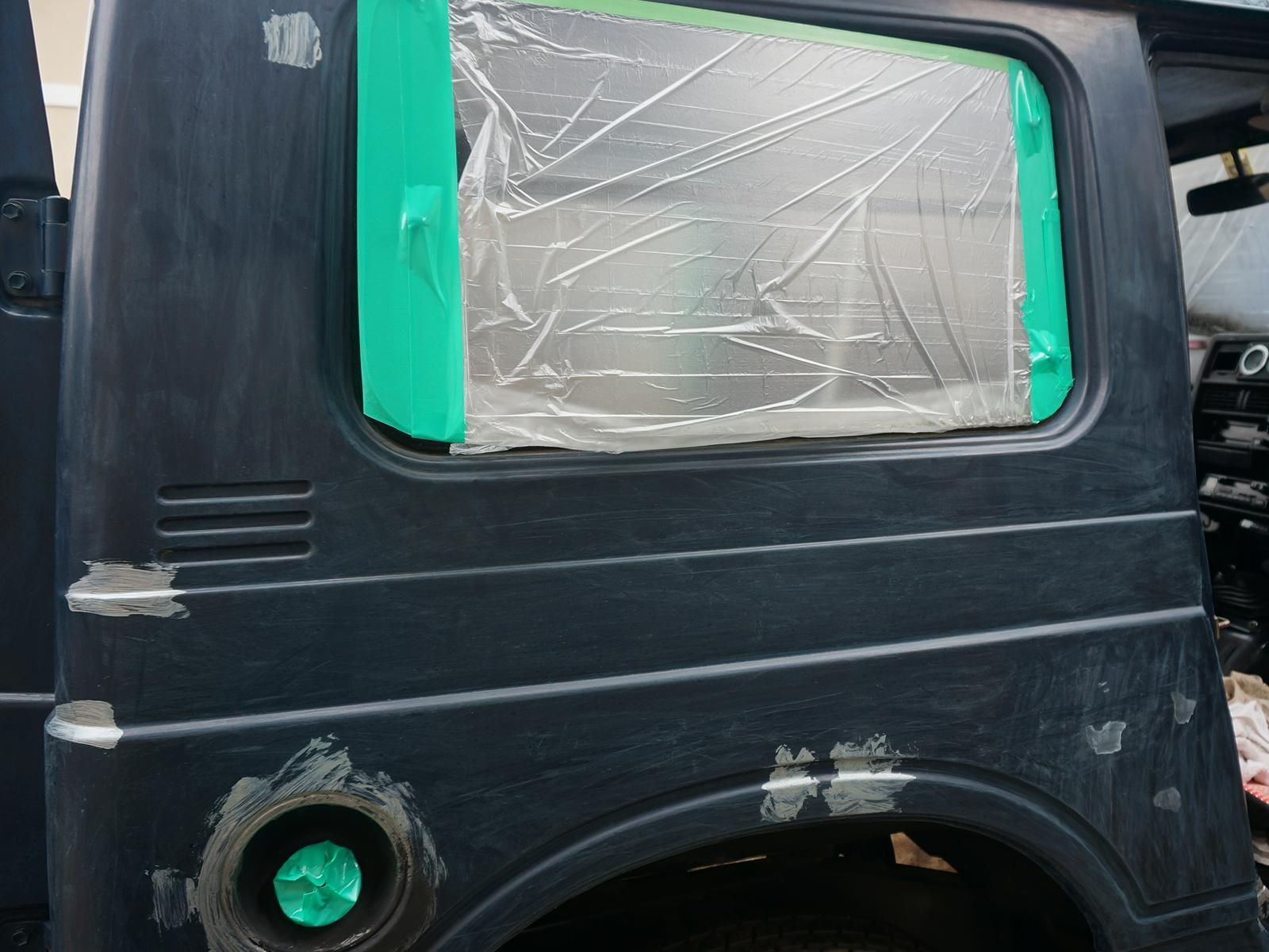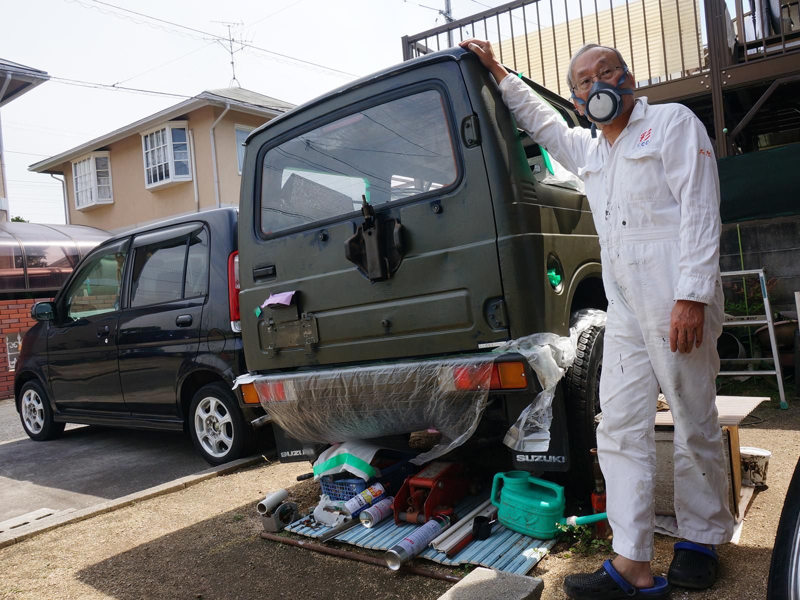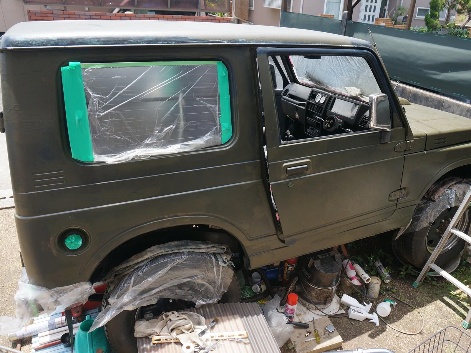 オリーブドラブでジムニーJA11を刷毛塗り全塗装された事例です