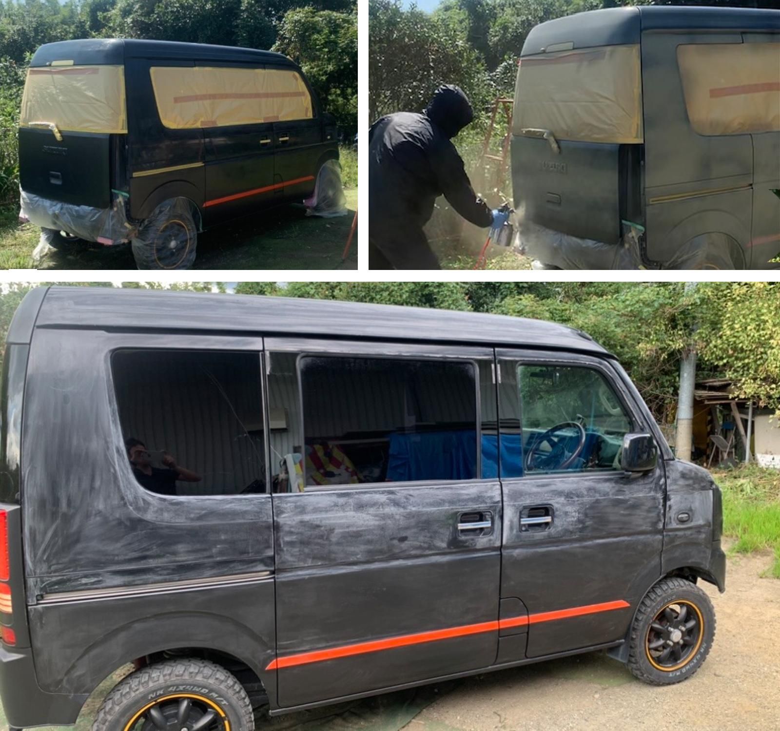 ローデシアブラウンでエブリイワゴンDA64Wを全塗装された事例です