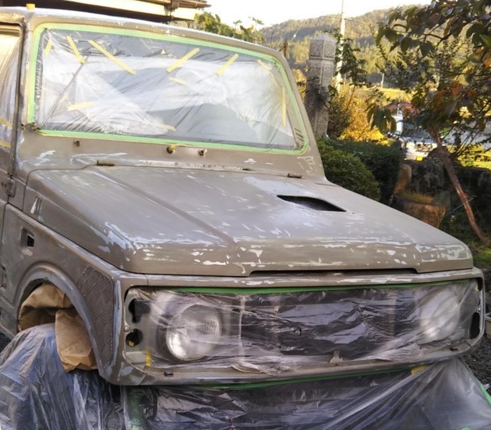 ローデシアブラウンでジムニーJA22を全塗装された事例です