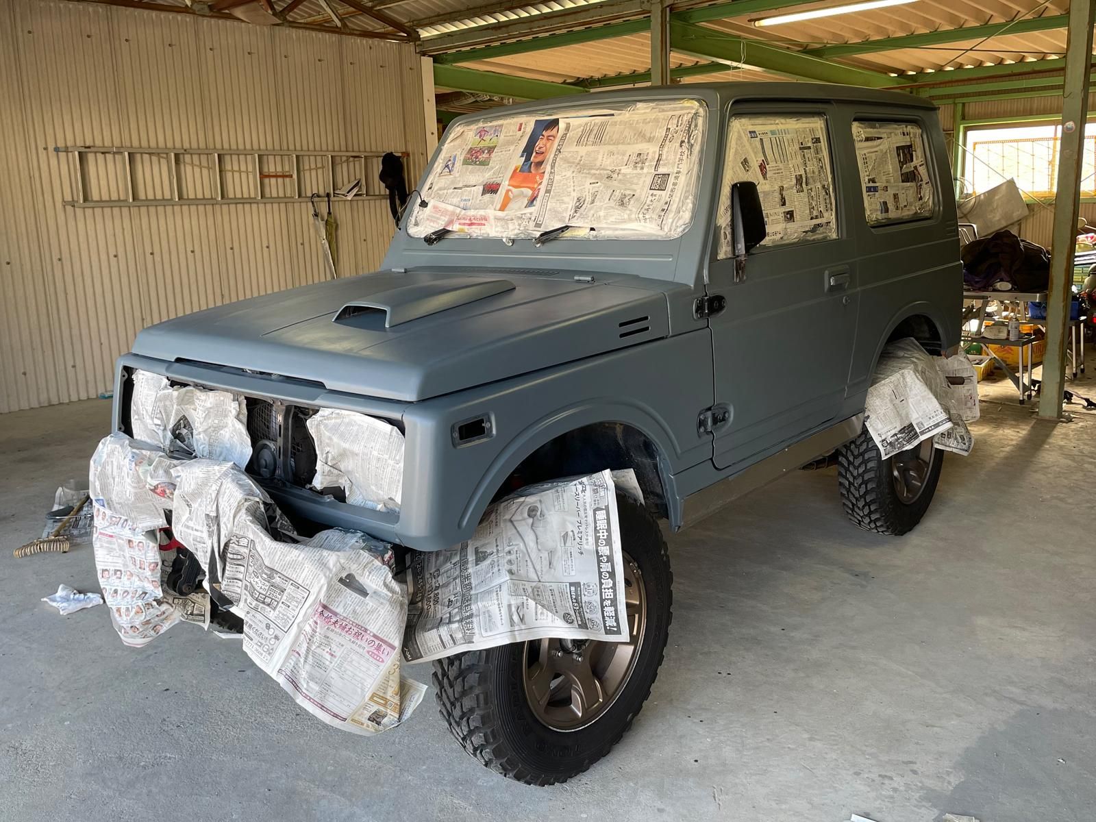 イーグルブルーグレーでジムニーを刷毛塗り全塗装された事例です