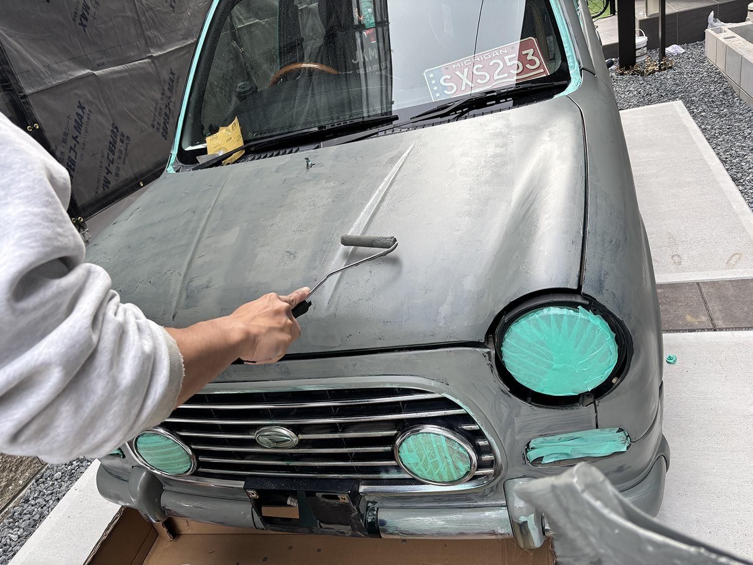フレンチグレーでミラジーノを刷毛塗り全塗装された事例です