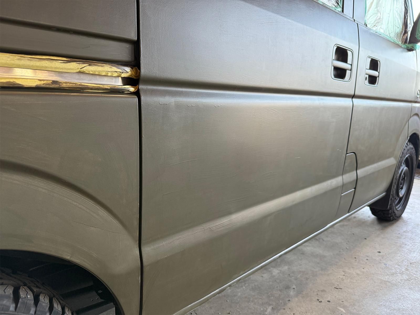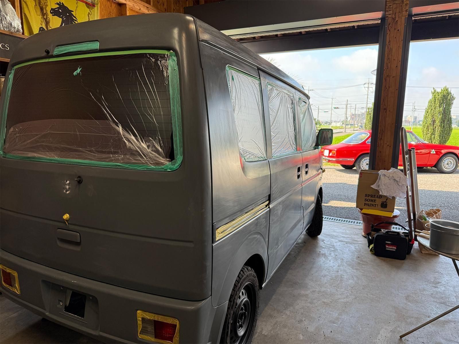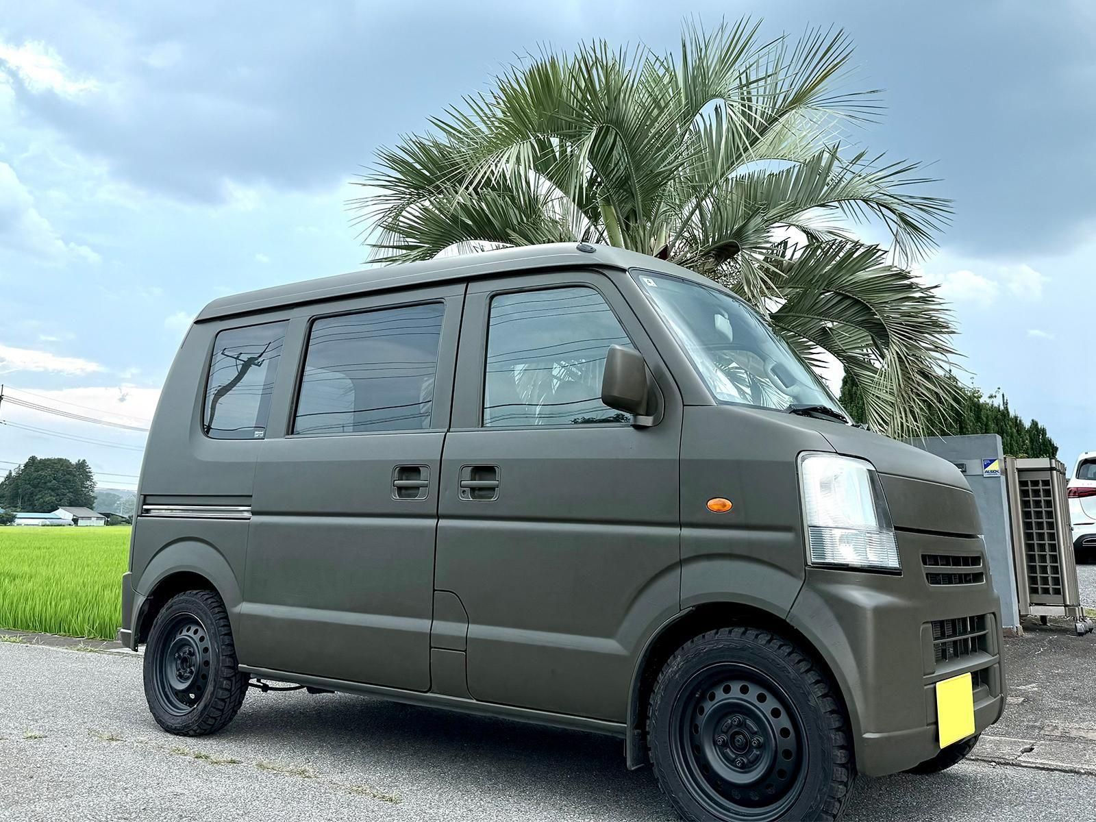 オリーブドラブでエブリイを刷毛塗り全塗装された事例です