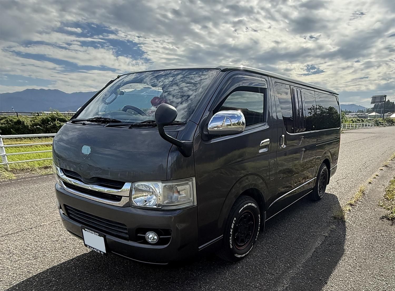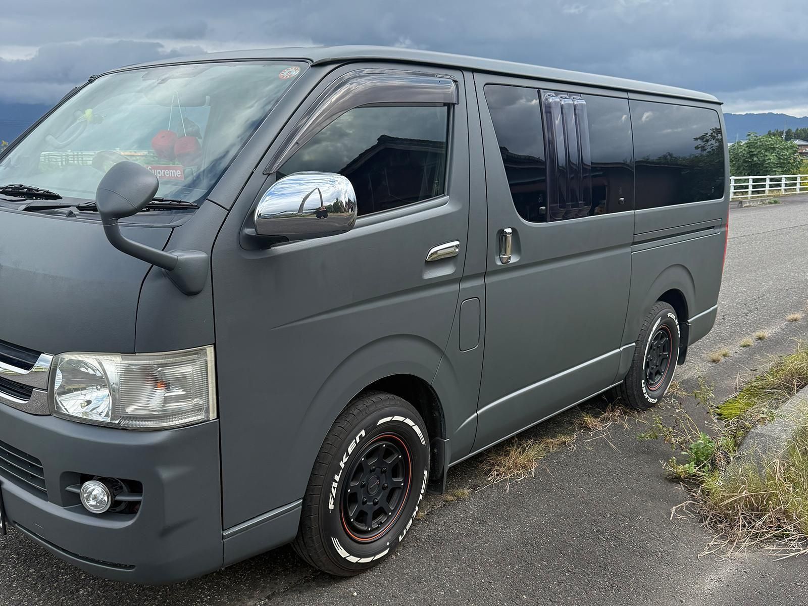 ミドルダークフレンチグレーでハイエースを刷毛塗り全塗装された事例です