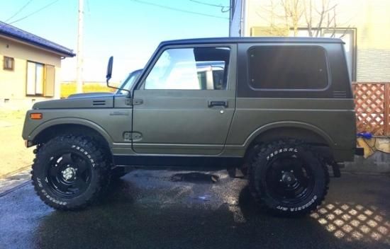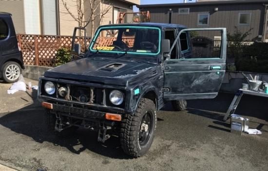 ジムニーをOD色とマットブラックで幌車風に全塗装した事例です