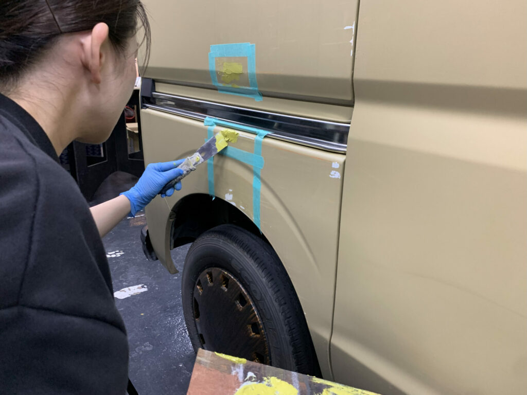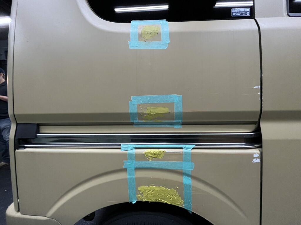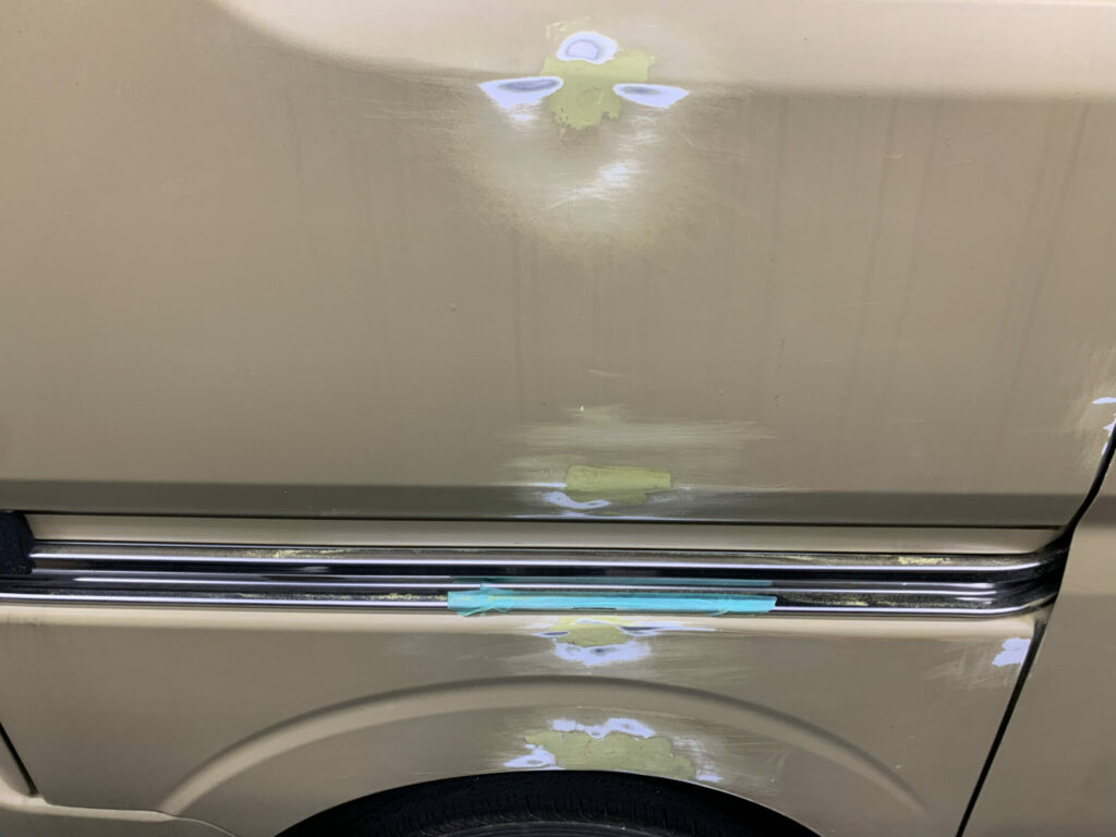 乾燥後、周囲のボディラインと馴染むように120番のサンドペーパーで平らにしていきます。