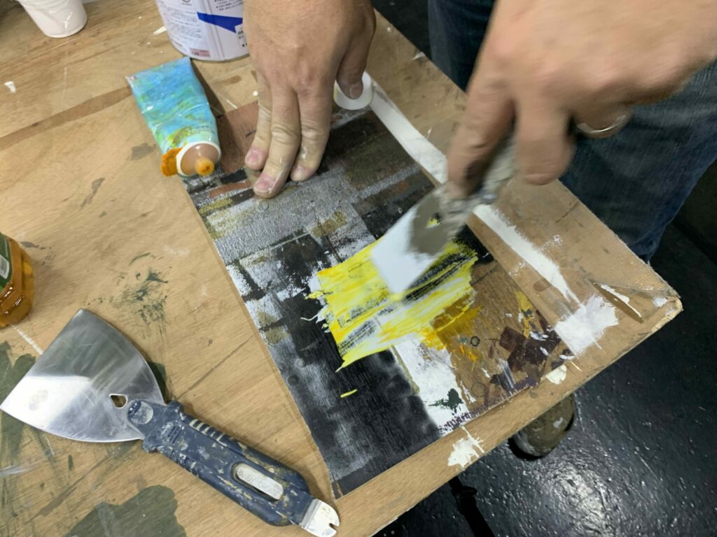 主剤と硬化剤を混ぜ、しっかりと黄色になるまで混ぜ合わせます。