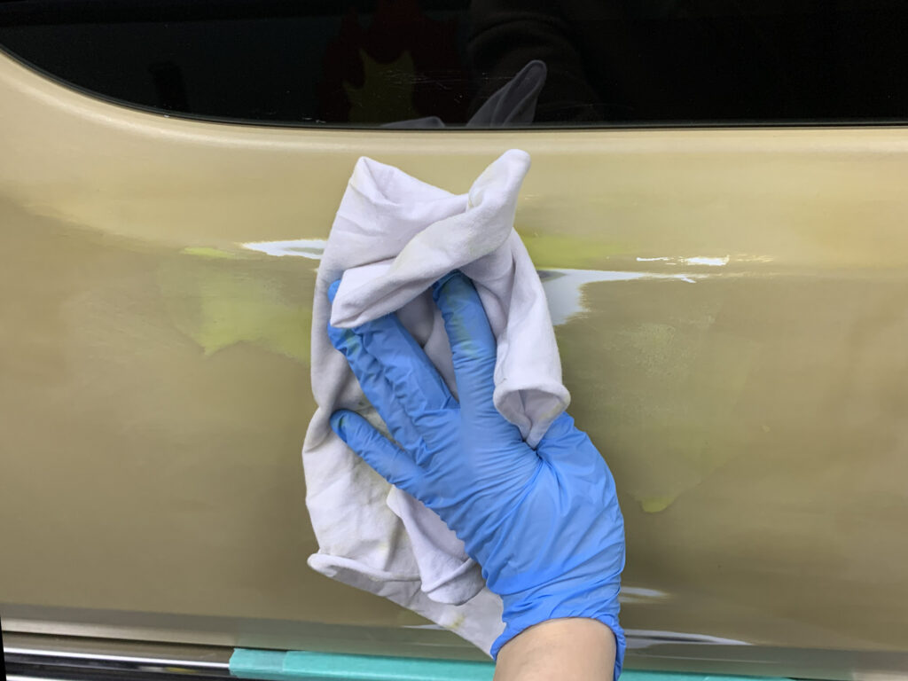 研いだ後はワックスオフで表面をさっと拭き取ります。