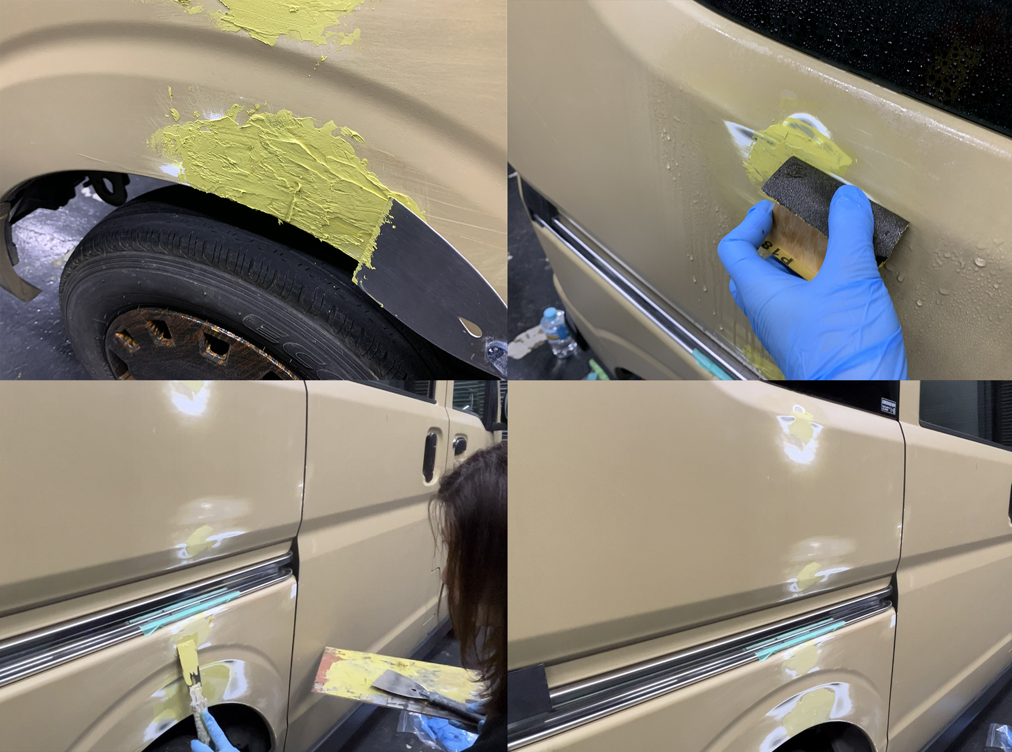 パテ作業が終わり、いよいよ塗装の工程へ進みます。