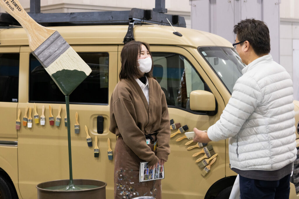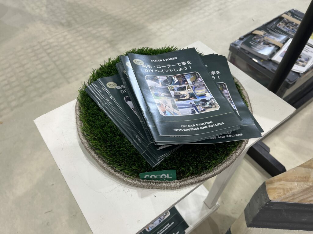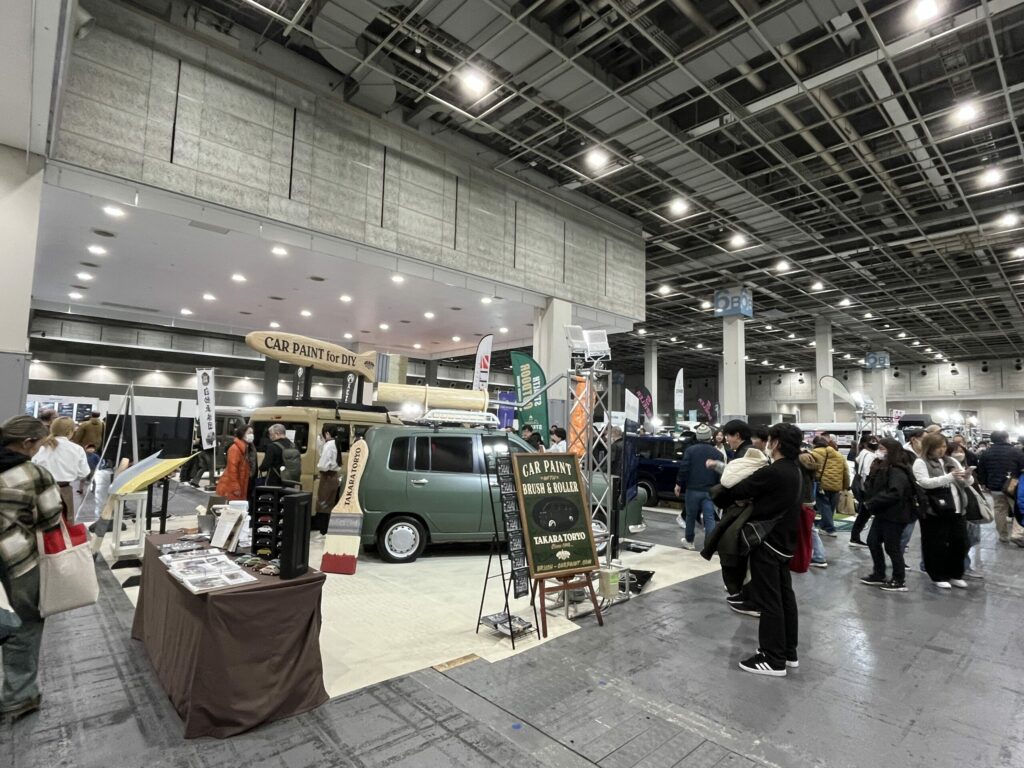 ブースには、タカラ塗料の車用塗料で実際にDIY全塗装をしたお客様もお越しくださり、「大変だったけど塗装して本当に良かった」「次は違う色で塗ってみたい」といった、リアルな感想を伺うことができました。