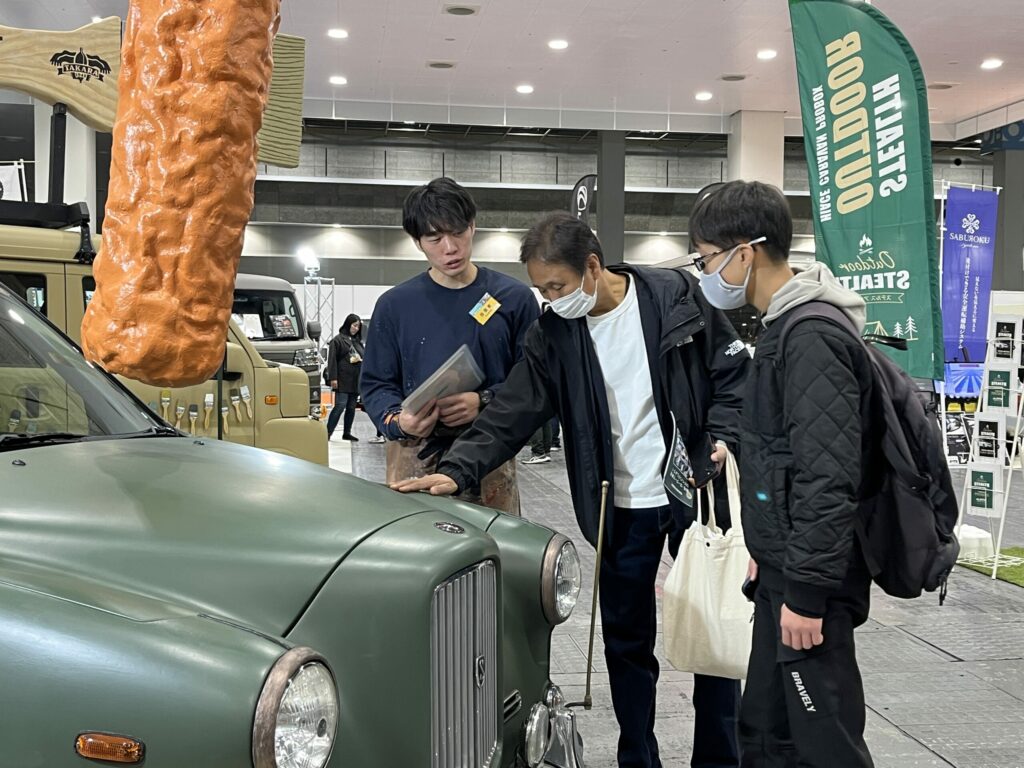 「車をDIYで塗れるの?」「刷毛とローラーでもここまでキレイに仕上がるの?」と、多くの方に驚きの声をいただき、手塗り塗装ならではの仕上がりやマット塗装の質感を実際に見ていただける貴重な機会となりました。