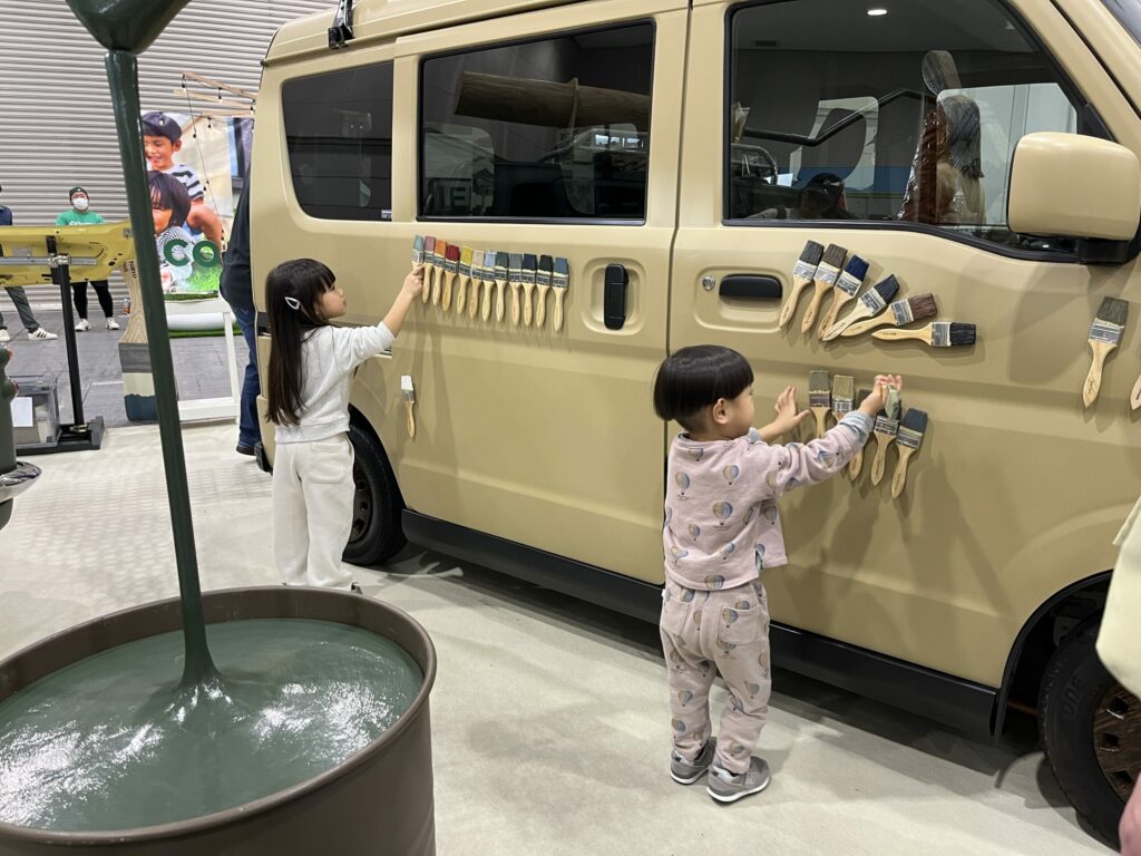 「刷毛とローラーで車を全塗装できる」ことを体感できるブースに