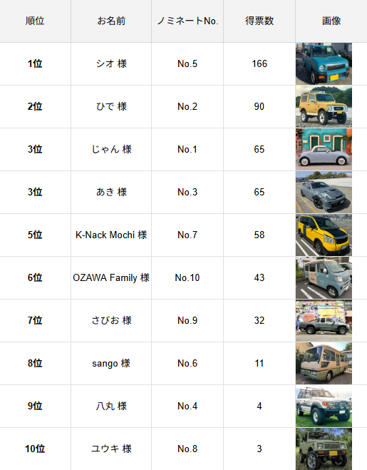 「まだ投票していなかった」という方はもちろん、「もう一度あの1台を応援したい」という方も、