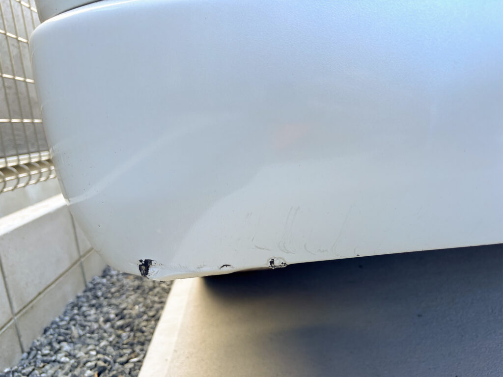 ご主人がメインで使われているハイエースバンのリアバンパーをぶつけてしまい、擦り傷とへこみがくっきり残ってしまったそうです。